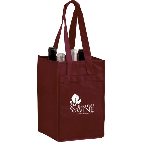 Non-Woven Polypropylene 4-Bottle Wine Tote Bag