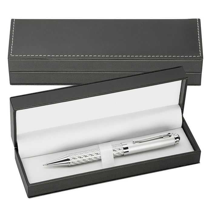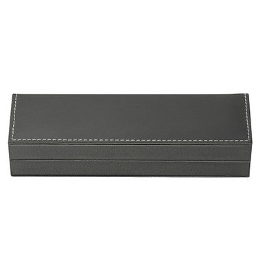 Your search ends with the Custom Branded Single Pen Box, where sophistication meets a dash of rebellion. Crafted from leather-look material with contrasting white stitching, this pen box is the James Dean of pen holders—cool, classic, and a little bit edgy. Inside, a white velvet look interior cradles your pen like a rockstar on a velvet throne.