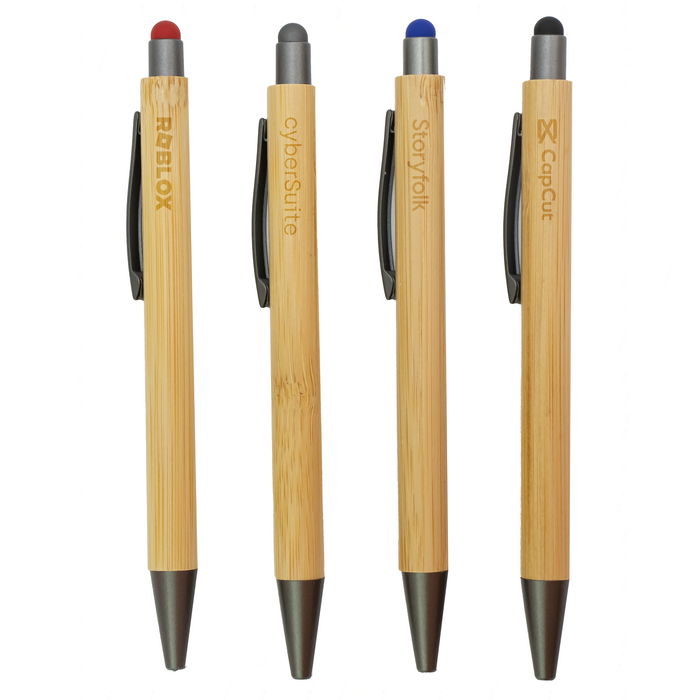 Level up with the Monopoli Bamboo Pen, where eco-chic meets rebel flair. This isn't just a pen; it's a statement. With a coloured nib and gunmetal grey clip, it's the perfect sidekick for those who scribble with style and a conscience. Click, write, and let your words do the talking while the pen does the planet-saving.