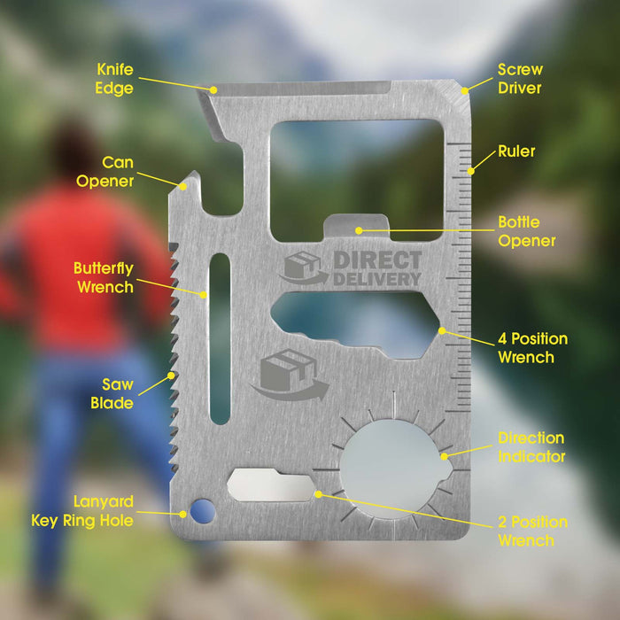 - Includes 6 hex head wrenches, a ruler, can opener, screwdriver, knife, direction indicator, butterfly wrench, saw blade, lanyard hole, and bottle opener