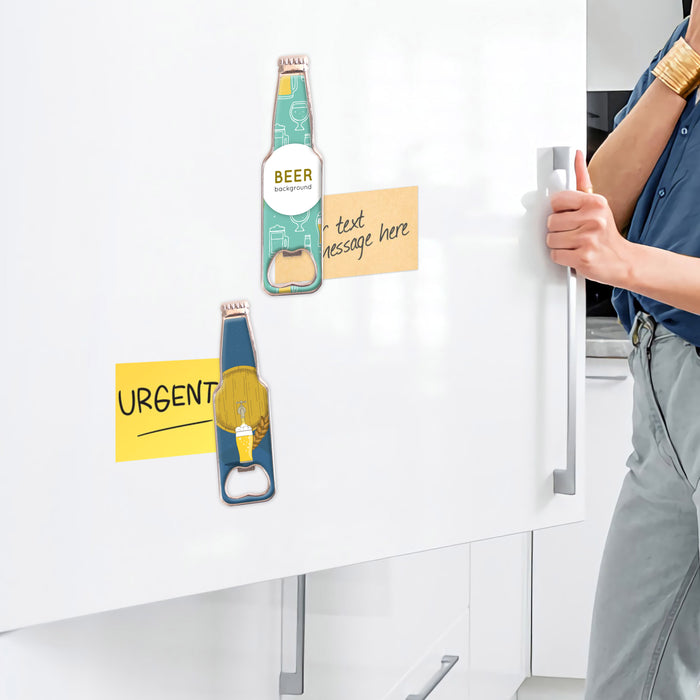 Introducing your new favorite fridge companion: the Bottle Shaped Opener Fridge Magnet. This little rebel is crafted from quality zinc alloy, ready to cling to your fridge like a punk to a mosh pit. With its universal bottle shape, it's the perfect sidekick for beer clubs, bars, or your own kitchen chaos. And let's not forget the epoxy doming that makes your design pop like a neon mohawk.