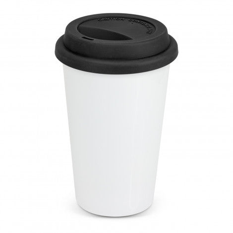Introducing your new favorite caffeine companion, the Aztec Double Wall Coffee Cup 350mL. This ceramic marvel is your ticket to sipping in style, with a double wall design that keeps your brew hotter than a mosh pit. Perfect for those who like their coffee as bold as their branding, this cup is ready to rock your world with full colour wrap-around possibilities. Just remember, it's a handwash-only affair—because dishwashers are for the faint-hearted.