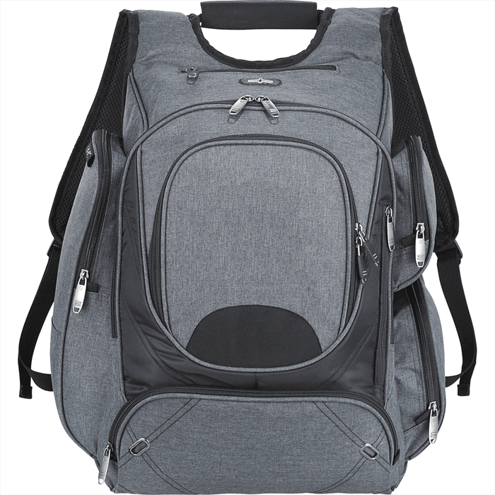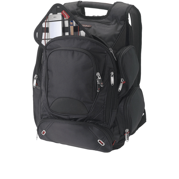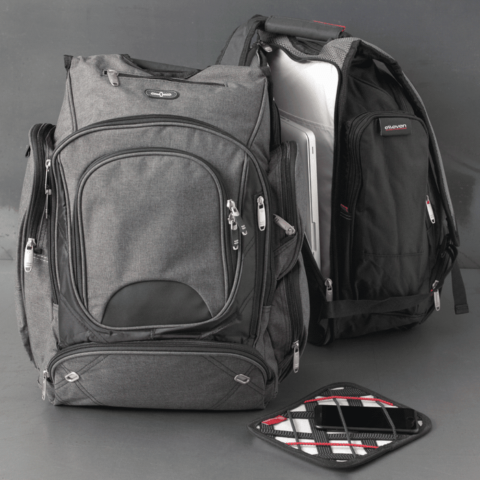Introducing your new favorite travel sidekick, the Elleven Checkpoint-Friendly Compu-Backpack. This bad boy is designed to breeze through airport security faster than a punk at a pop concert. With a laptop-only section that unfolds flat on the X-ray belt, you'll be the envy of every frequent flyer. Just remember, the pens, laptop, and other devices shown are not included—because we know you're already packing your own chaos.