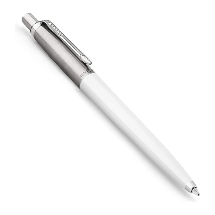 Level up with the Parker Jotter Originals Ballpoint Pen in White, where French flair meets punk panache. This isn't just a pen; it's your trusty sidekick in the battle against boring. With its glossy plastic barrel and stainless steel cap, it's ready to scribble your manifesto or jot down your grocery list with equal gusto. Packaged in a luxurious Parker box, it's the ultimate tool for everyday rebellion.