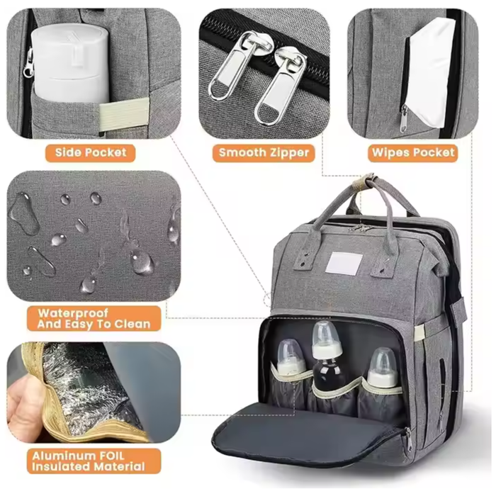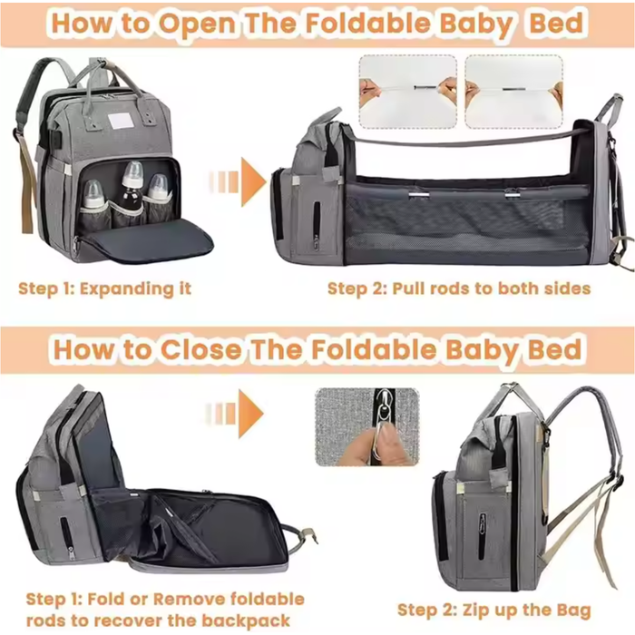 Portable Folding Baby Bed Crib Backpack. For the punk parents who refuse to be tied down, this backpack is your ticket to freedom. Transforming from a stylish backpack into a cozy crib, it's the ultimate travel companion for your little rebel. Whether you're hitting the road or just running errands, keep your baby snug and secure while you rock the world.