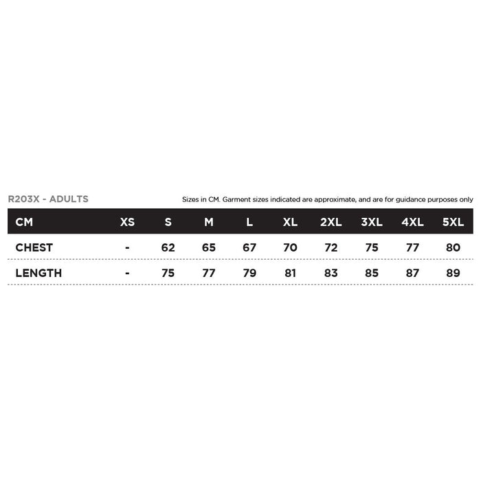 - Sizes: S, M, L, XL, 2XL, 3XL, 4XL*, 5XL*